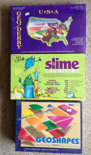 Lot Of 3 Science & Education Kits Geoshapes Slime Chemistry Geography Game