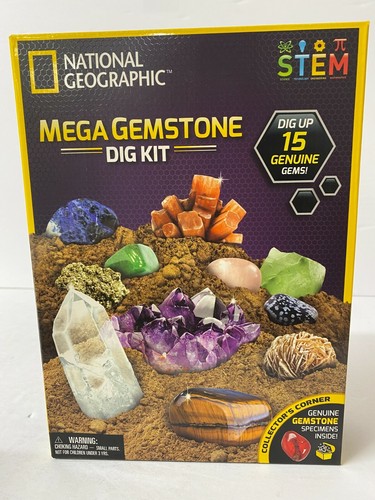 National Geographic Mega Gemstone Dig Kit, 15 Real Gemstones Science Kit - New